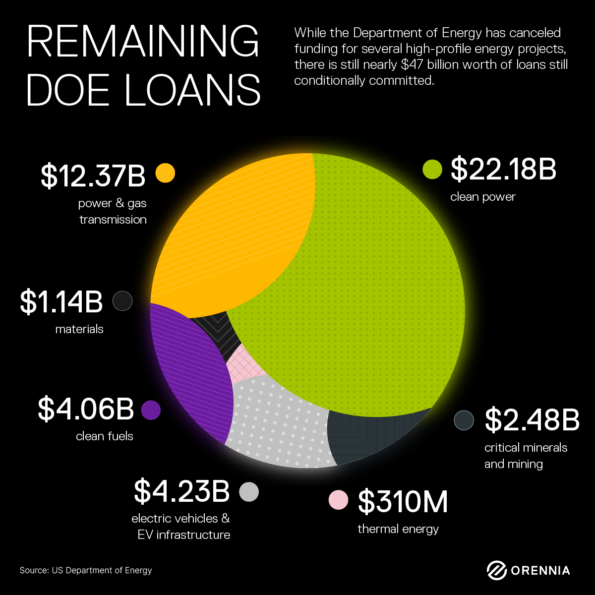 While the Department of Energy has canceled funding for several high-profile energy projects, there is still nearly $47 billion worth of loans still conditionally committed.