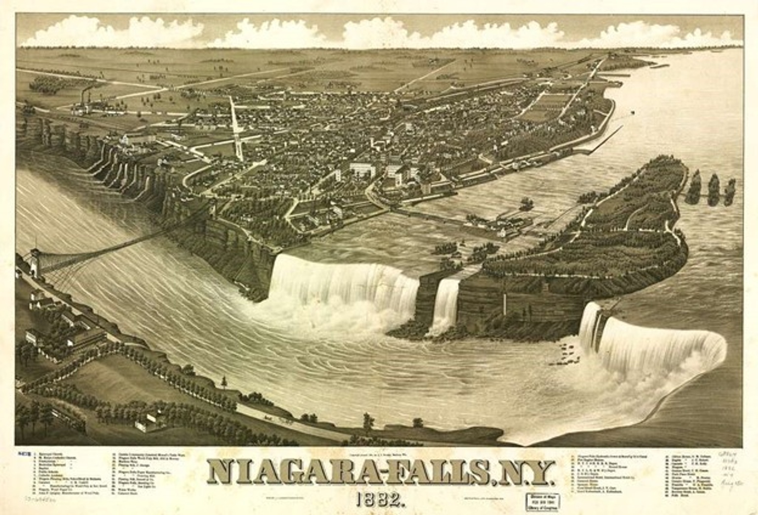 A drawing of Niagara Falls prior to hydropower development // Wikipedia Commons